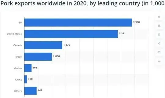 (圖:2020年全球主要豬肉出口國出口量預(yù)測(cè))